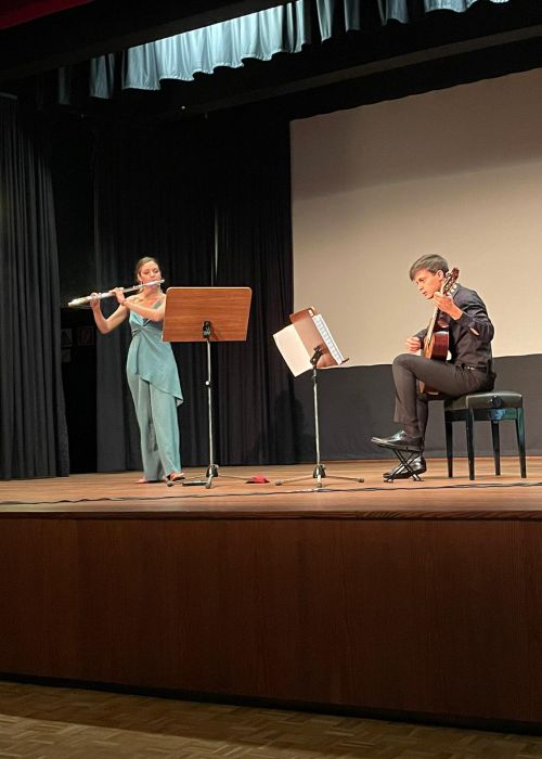 La Sala Teatro dell'Istituto si é riempita - nel rispetto delle norme Anti-Covid e previa presentazione di certificato vaccinale - di amici ed estimatori della Lingua e Cultura Italiane e dei loro rappresentanti. La serata é stata impreziosita dal concerto del Duo Image con la Sonatina di Mario Castelnuovo Tedesco, l'Histoire du Tango di Astor Piazzolla e l'Entr'acte di Jacques Ibert, nonché conclusa con il tipico appetitoso buffet dell'Istituto Italiano di Cultura.