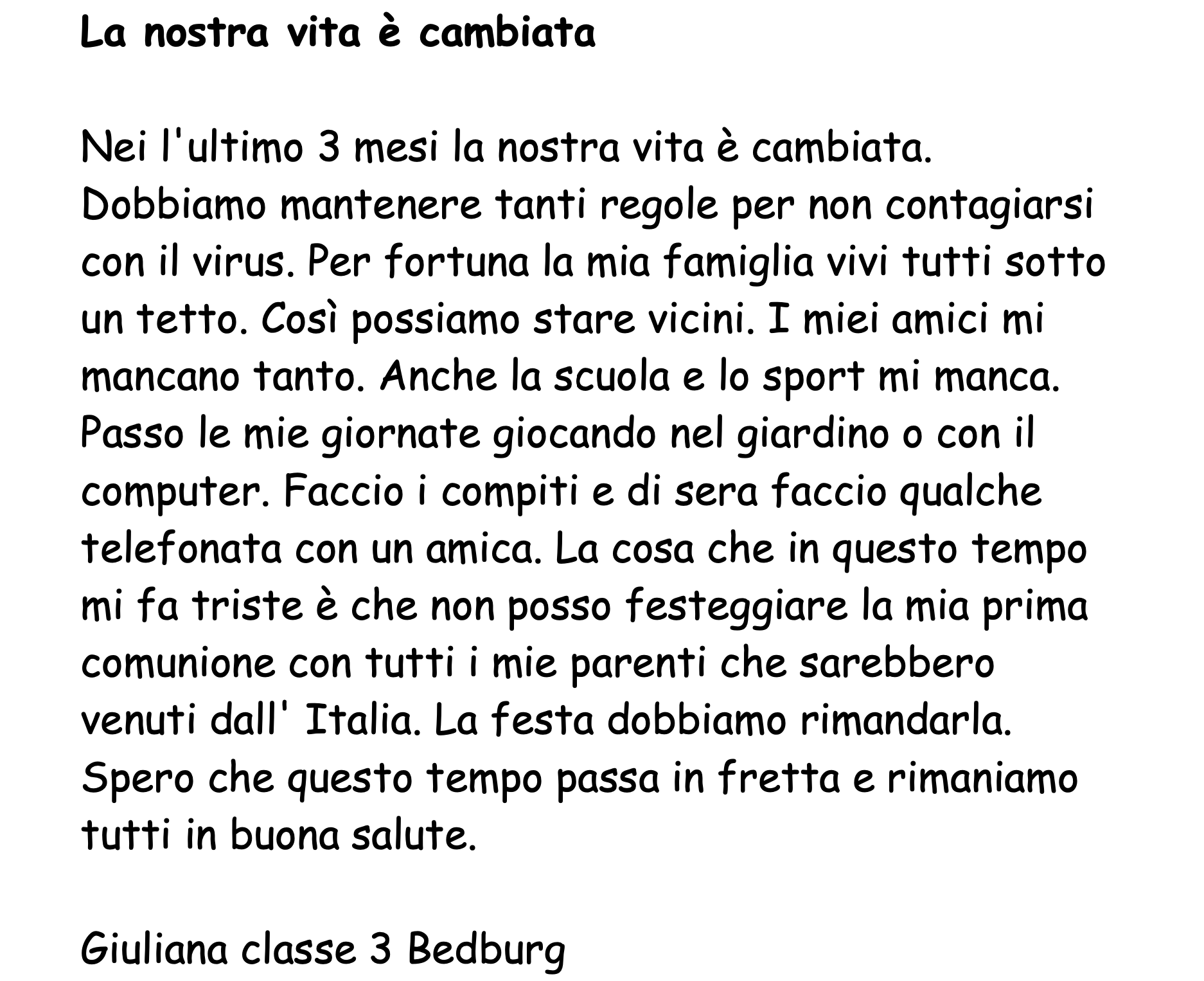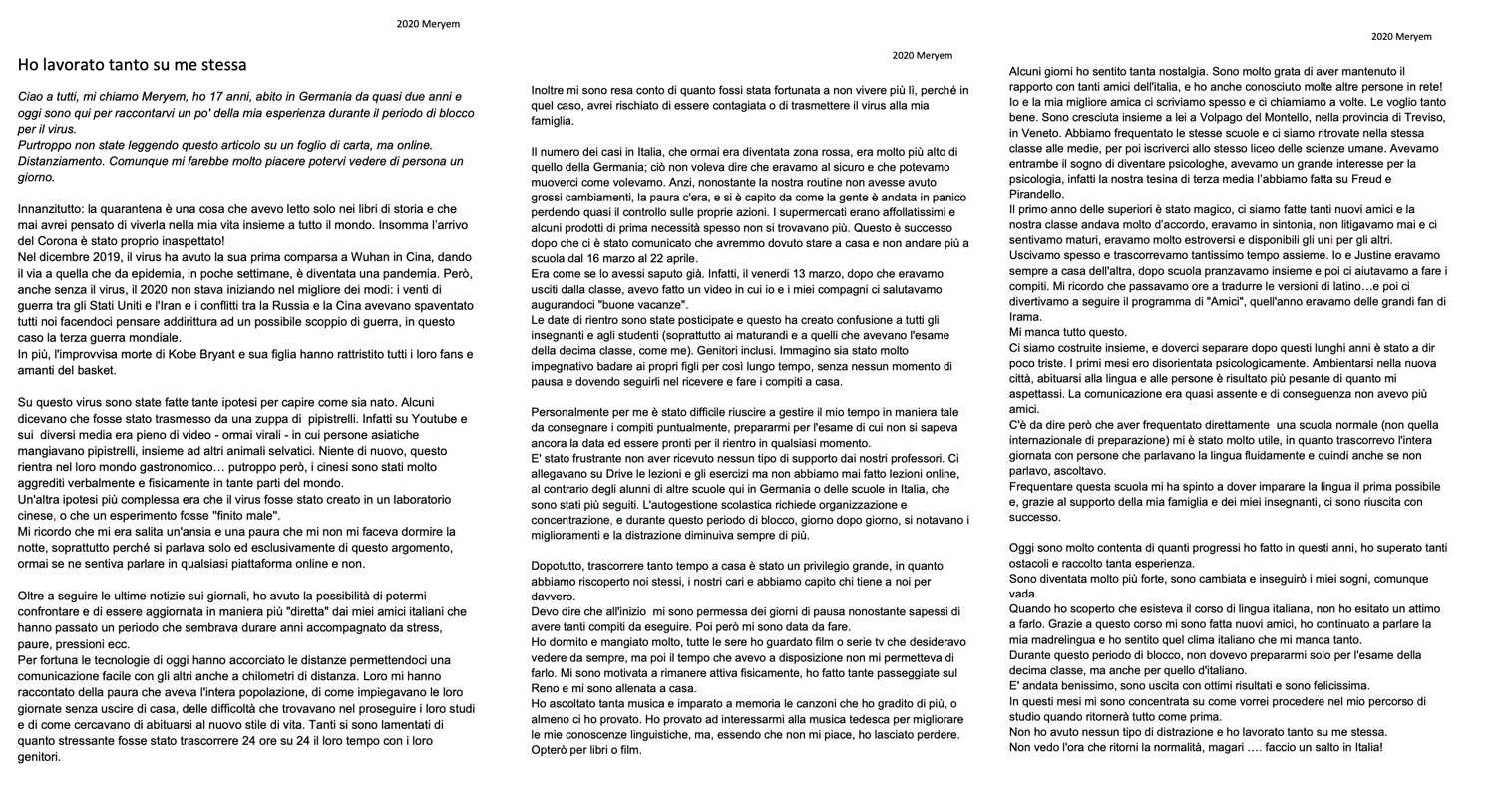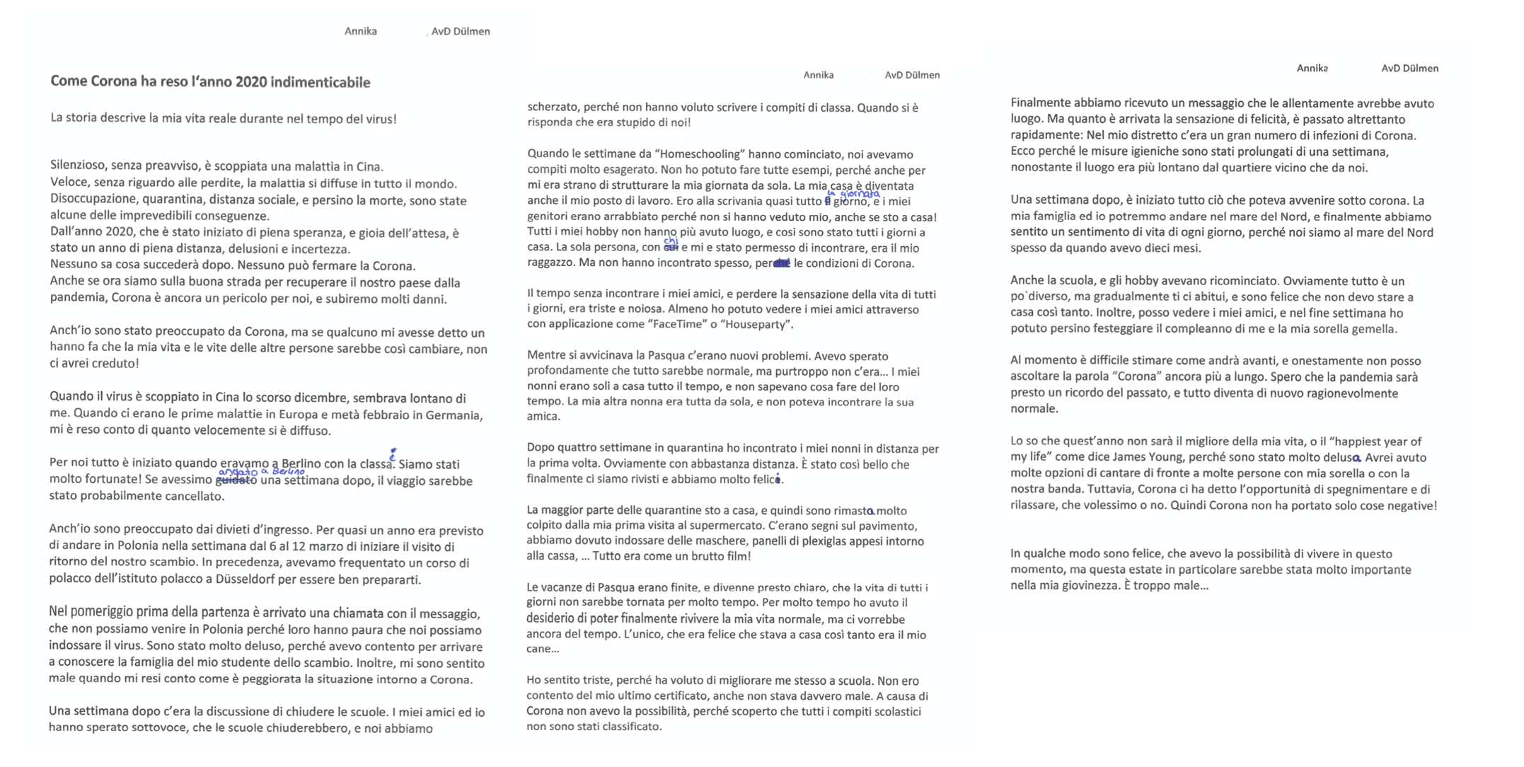 Breve memoria storica sul periodo della pandemia COVID-19, descritta da giovani di origine italiana o che studiano italiano e frequentano le scuole del Nordreno-Vestfalia