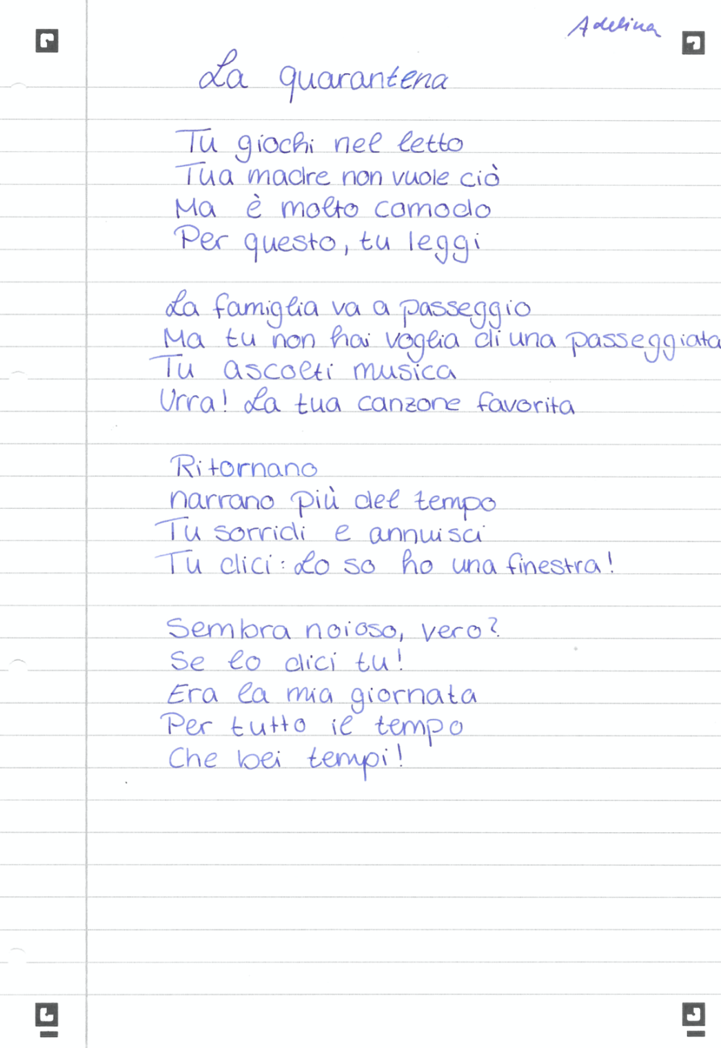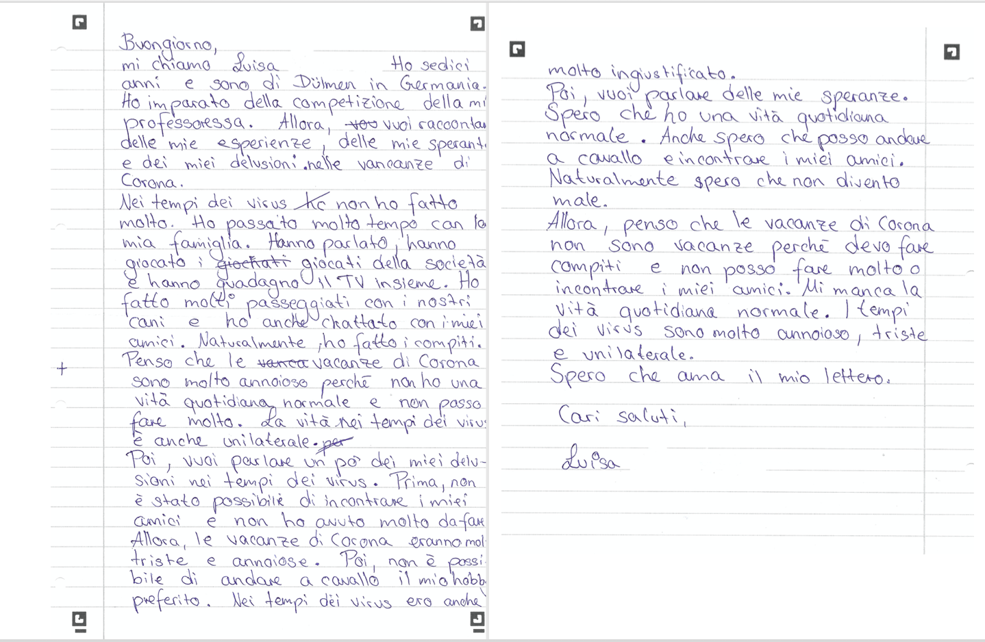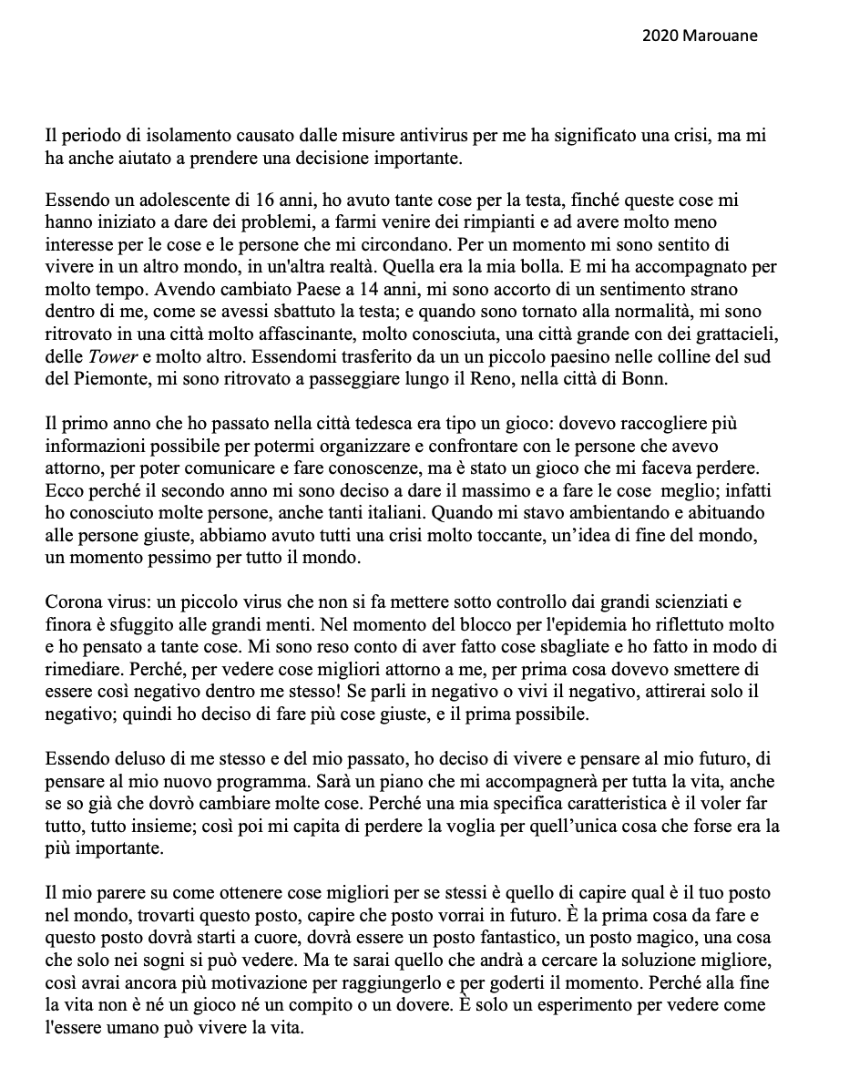 Breve memoria storica sul periodo della pandemia COVID-19, descritta da giovani di origine italiana o che studiano italiano e frequentano le scuole del Nordreno-Vestfalia